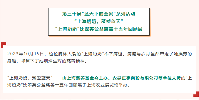 公益熱點 | 安徽正宇面業出席“上海奶奶”沈翠英公益慈善十五周年回顧展