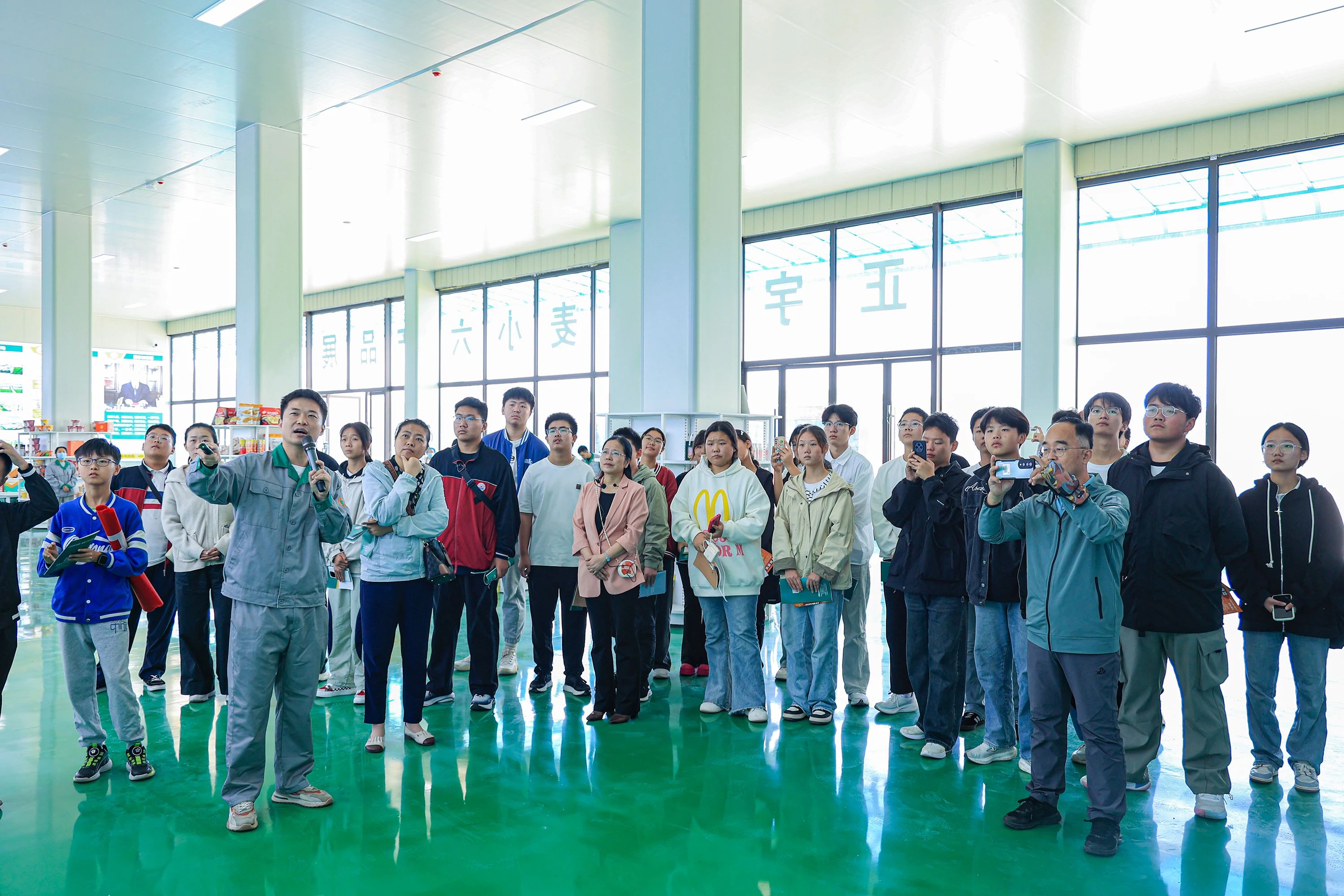 在活動(dòng)進(jìn)行中,曹鑫主任向二中師生們介紹了正宇食品產(chǎn)業(yè)園的基本情況和發(fā)展歷程,并針對“麥小六”產(chǎn)業(yè)鏈六大產(chǎn)業(yè)板塊(種植業(yè),面粉業(yè),食品業(yè),醋產(chǎn)業(yè),豆產(chǎn)業(yè),觀光農(nóng)業(yè))進(jìn)行了深入淺出的講解,到訪師生無一不為正宇集團(tuán)的飛速發(fā)展表示驚嘆。