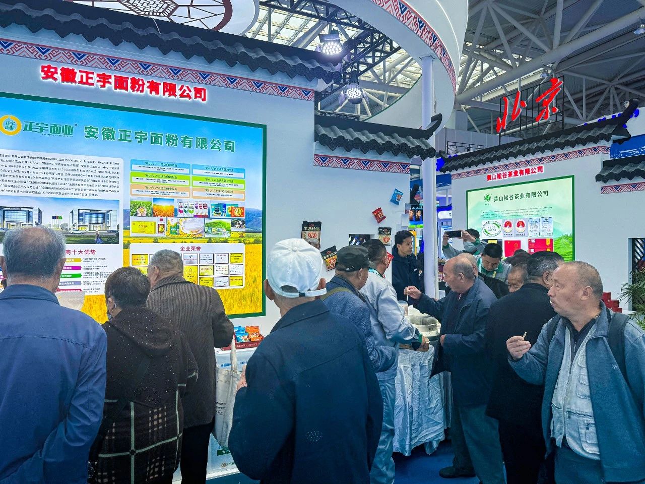 正宇集團展臺前熙熙攘攘,參展觀眾對正宇集團獨具特色的富硒面粉、本草醋、非油炸方便食品等產品表現出了極大的興趣。而在品鑒了現場蒸制的包點、餃子之后更是贊不絕口。