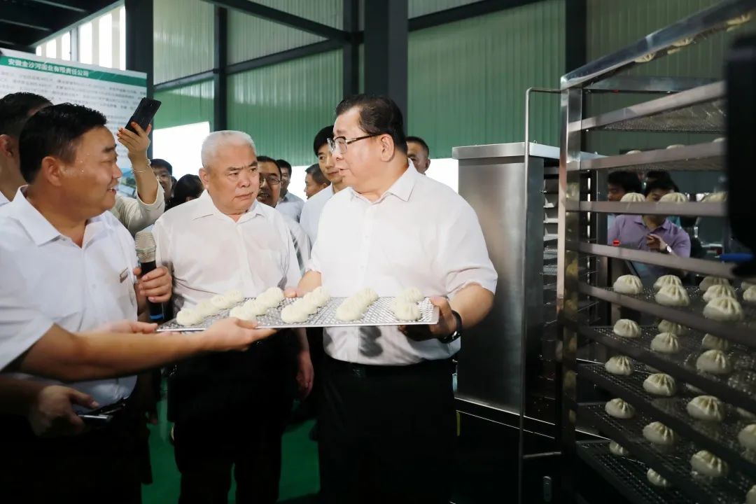 市委書記杜延安、渦陽縣縣委書記劉興德查看沙縣小吃自動化加工流水線生產(chǎn)情況