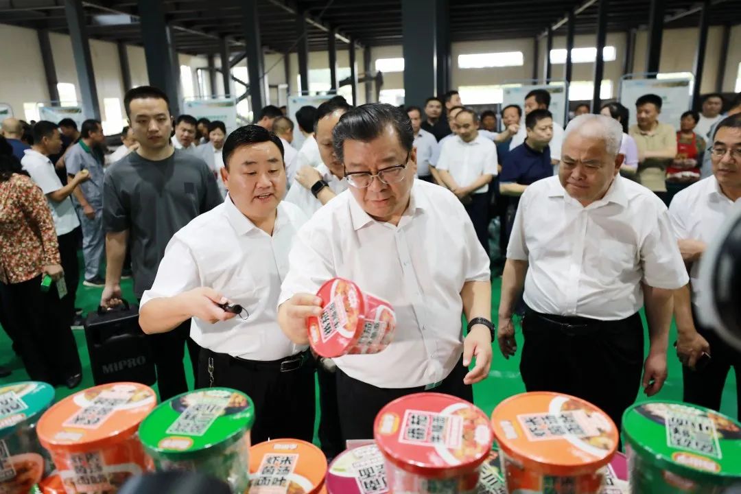 市委書記杜延安到安徽喜由季食品科技有限公司展區(qū)查看非油炸(方便面)產(chǎn)品